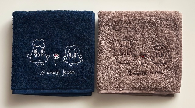 今治刺繍タオル ハンドタオル AMOTE JAPANオリジナルキャラクター アイスをモチーフにした、『Lindo & Linda』 ●ふわふわの使い心地と高い吸収性! *今治タオルの品質で安心感抜群! *しっかりと水分を吸収する吸収性に優れています。 *可愛いデザインで日常使いにもぴったり! *人気の色展開で、お好みに合わせて選べます。 【サイズ】約 25× 25cm 【本体材質】綿100% 【刺繡糸】レーヨン 【色】紺色、茶色(お好きな色をお選びください) 紺色:可愛いキャラクターがあなたを笑顔に 茶色:落ち着いたデザインでユニセックスでお使いいただけます *毎日の洗顔や手洗いに最適なサイズ! *柔らかい肌触りで、赤ちゃんや敏感肌の方にもおすすめ! *今治ブランドの信頼性で、ギフトとしても喜ばれます。 今治タオルの品質基準に合格したタオルのみに付与されます。 【使用上の注意】 ●タオルは初めのうち多少色落ち毛羽落ちしますので、白いものとは別に洗濯してください。 ●塩素系漂白剤は使用しないでください。 ●タンブラー乾燥(洗濯乾燥機、ドラム式乾燥機)を使用すると、しわ、縮み、形のゆがみ、毛羽落ちの原因となります。 ●直射日光での乾燥は色褪せの原因になりますので陰干しをお勧めします。